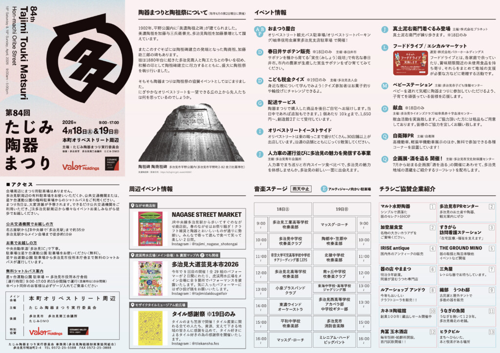 多治見市最大のイベント、たじみ陶器まつりが令和8年4月18日(土)、19日(日)に開催されます!